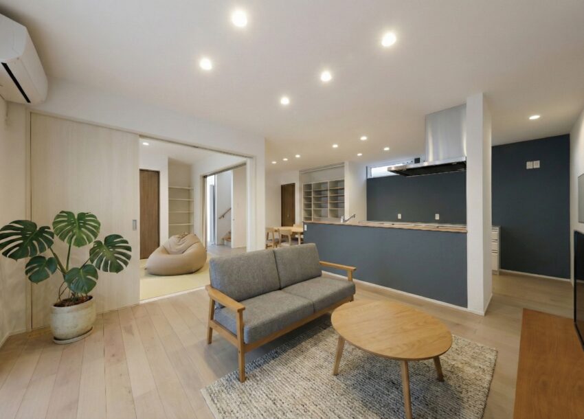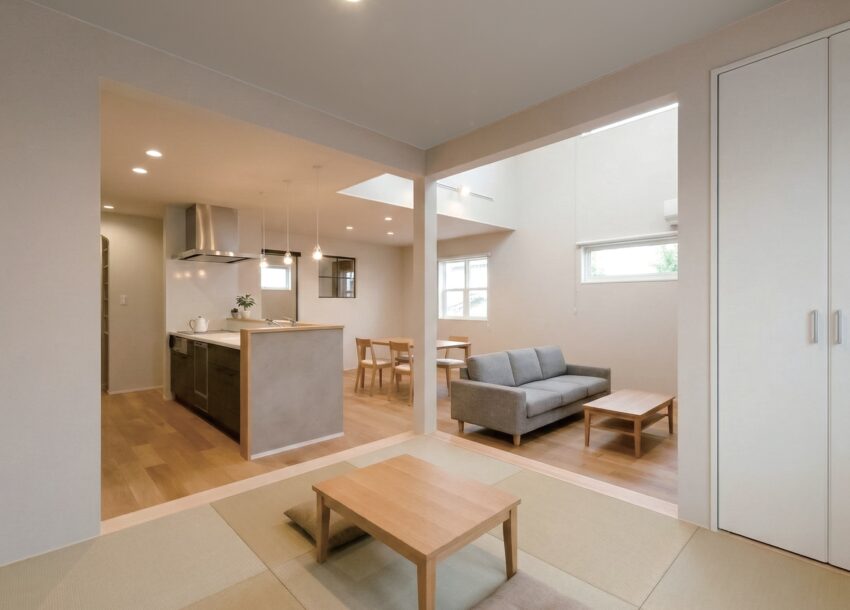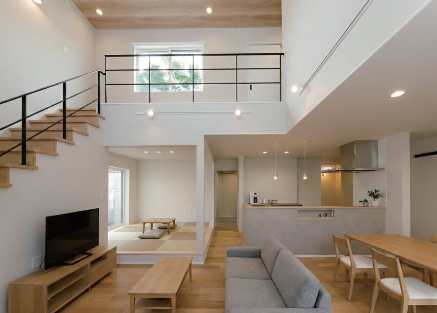 折り上げ天井リビングと小上がり畳コーナーで家族団らん